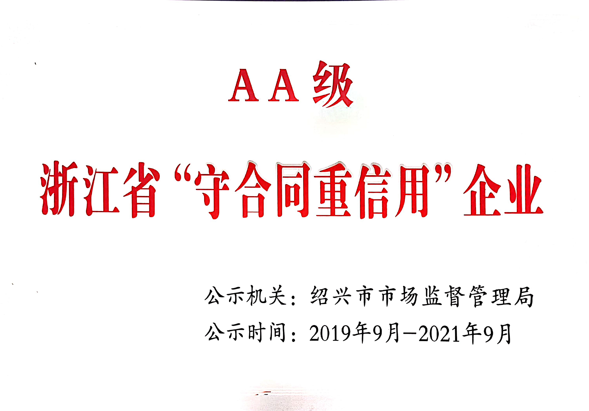 Provinciea Zhejiang la nivel AA „Onoarea contractelor și păstrarea creditelor” Întreprindere